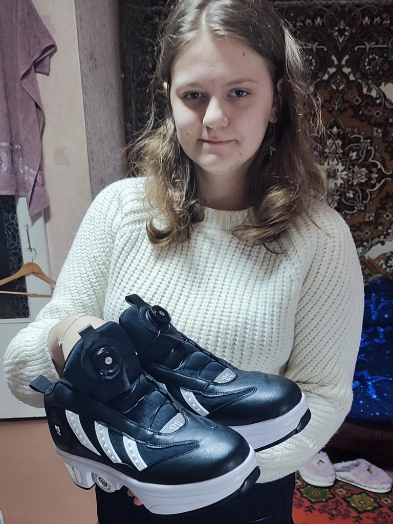 «Мечты детей должны исполняться! Еще один подарок доехал до девочки Леры из Макеевки. Лере 14 лет, учится в 9 классе, увлекается рисованием, компьютерными играми, читает книги. Решила приобщаться к активному образу жизни – захотела вот такие кроссовки, потому как не все виды активности ей доступны в полной мере.