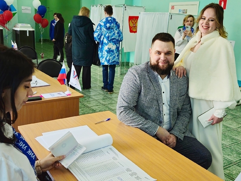 День выборов Президента России 2024 года навсегда останется в памяти для новобрачной пары Ольги и Никиты Поповых. Сегодня в их жизни произошло сразу два важных выбора – второй половины и Президента страны.