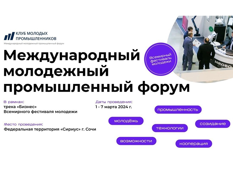 В рамках трека «Предпринимательство» Межрегиональным союзом «Клуб молодых промышленников» при поддержке Министерства промышленности и торговли Российской Федерации запланировано проведение Международного молодёжного промышленного форума, на площадке которого будет организована выставка промышленных проектов «Мы-будущее».