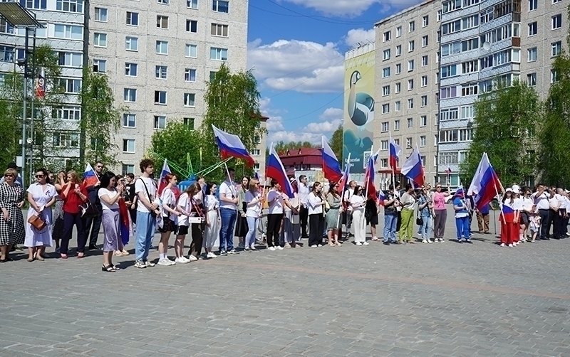 Празднование Дня России в Мегионе началось с торжественной церемонии поднятия флага . Полотном российского триколора городскую площадь украсили обучающиеся мегионского колледжа и юнармейцы второй и третьей школы.