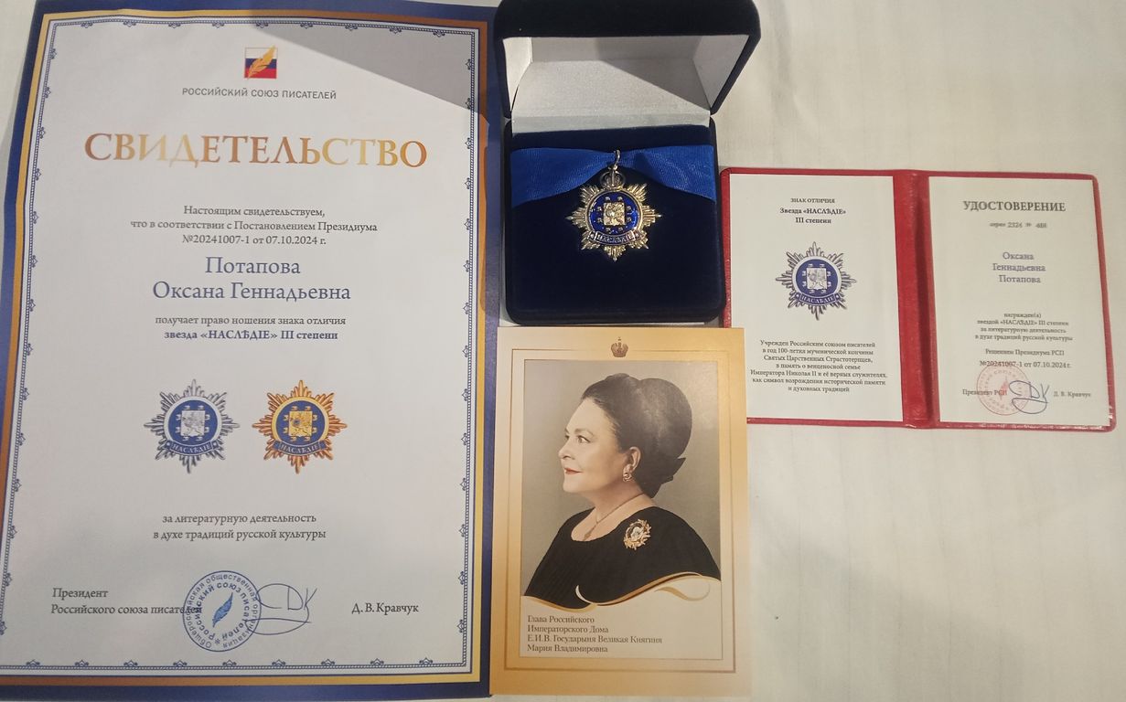 Писательница из Югры Оксана Потапова посвятила свою награду «Наследие» от Российского союза писателей депутату окружной Думы Андрею Осадчуку. Об этом она написала на своей официальной страничке в социальной сети «ВКонтакте».