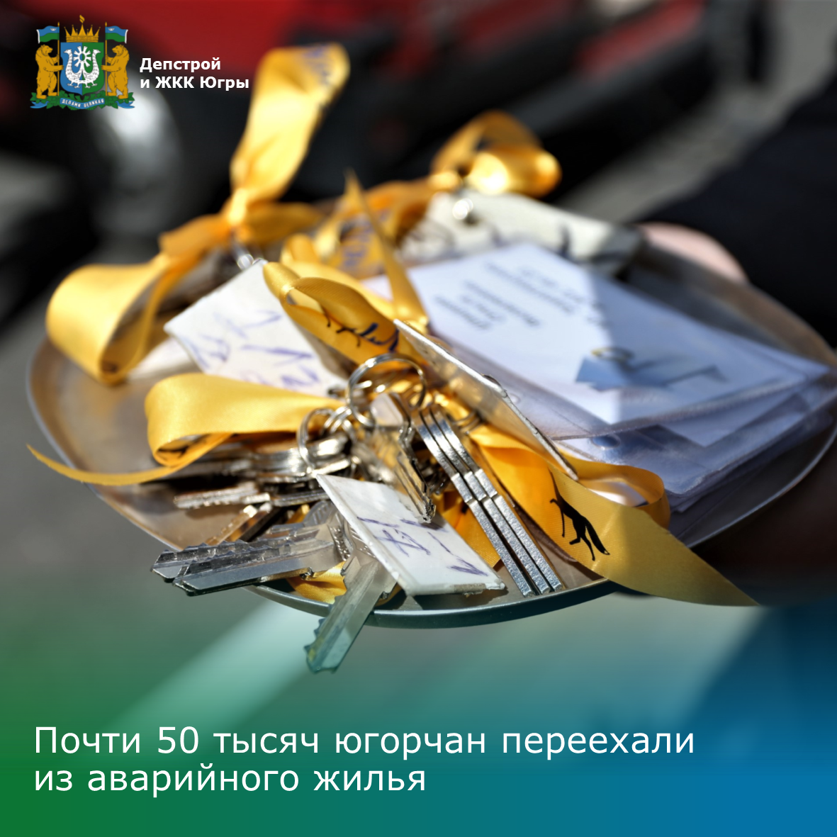 В рамках национального проекта «Жилье и городская среда» , инициированного Президентом России Владимиром Путиным , на территории Югры реализуется программа расселения аварийного жилья. Переселение людей в новые, комфортабельные квартиры осуществляется опережающими темпами. Округ входит в число лидеров среди субъектов Российской Федерации.