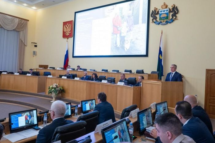 Фото: admtyumen.ru Глава Тюменской области Александр Моор в Тюменской областной Думе выступил с отчетом о результатах деятельности регионального правительства в 2023 году.