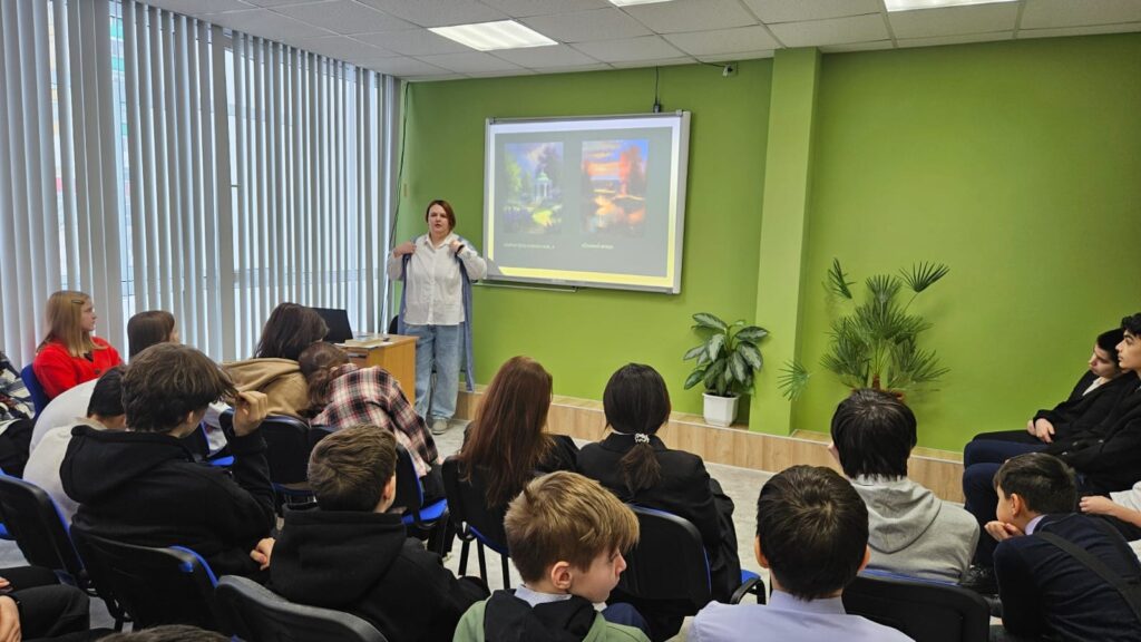 Ко Дню российской науки для учащихся школы №8 провели интерактивное занятие “Думай!” Школьники познакомились с научно-популярными журналами из фонда библиотеки, вместе с волонтером библиотеки А.П. Денисёнок создали иллюстрации к стихотворению Ф.И. Тютчева с помощью нейросети “Яндекс.Шедеврум”.