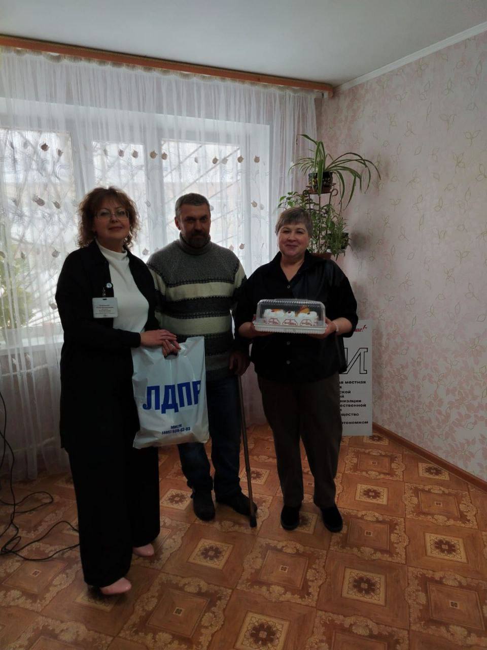 В знак признательности за их труд и преданность, Павел Кривцов и Иван Воробьев вручили женщинам букеты цветов, подарки от ЛДПР и праздничный торт.
