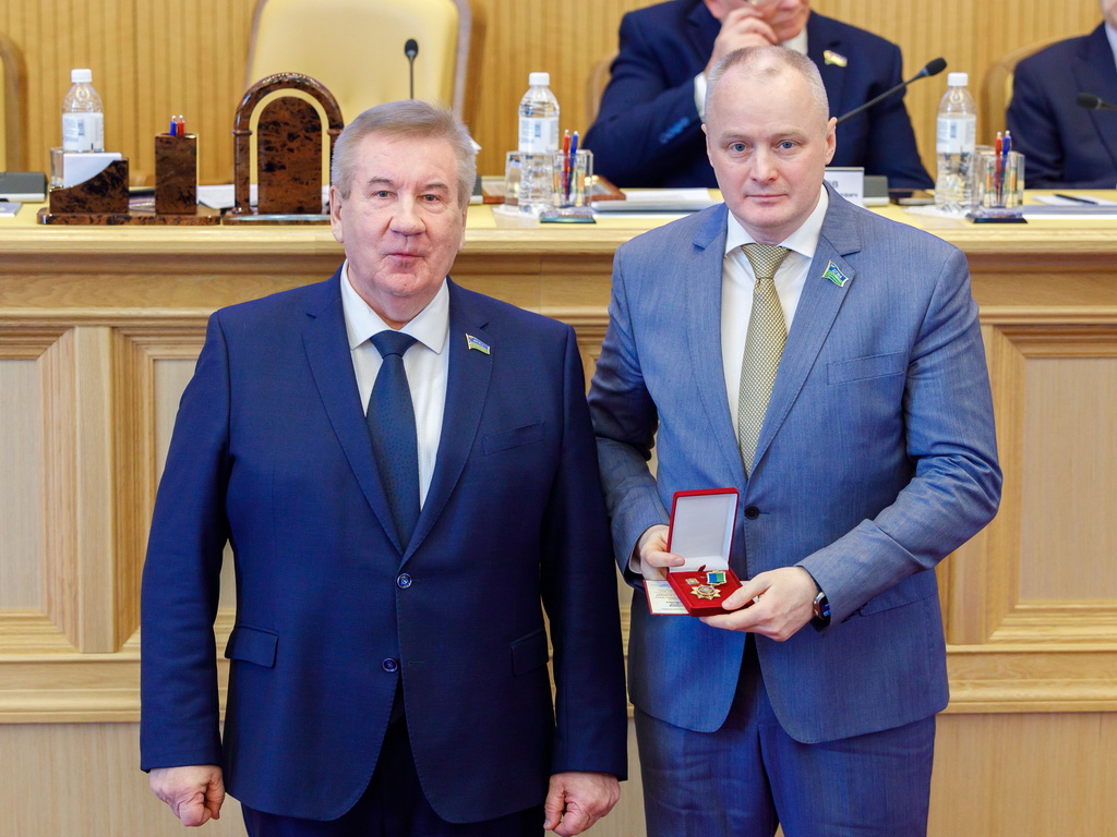 На юбилейном заседании Думы Югры, посвященном 30-летию со дня образования парламента автономного округа, Председатель Думы Югры Борис Хохряков вручил окружному депутату Сергею Елишеву Почетный нагрудный знак Ханты-Мансийского автономного округа – Югры «За вклад в развитие законодательства».
