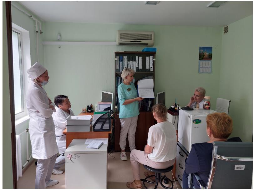 Медицинский персонал ознакомлен с нормативной документацией, подняты вопросы о факторах риска падений и мерах профилактики падений, физической активности, физических упражнениях для профилактики падений, организации безопасного быта, правильному подбору обуви, поведению после падения. Так же между сотрудниками были распределены зоны ответственности в соответствие с принятым регламентом по профилактике падений и переломов.